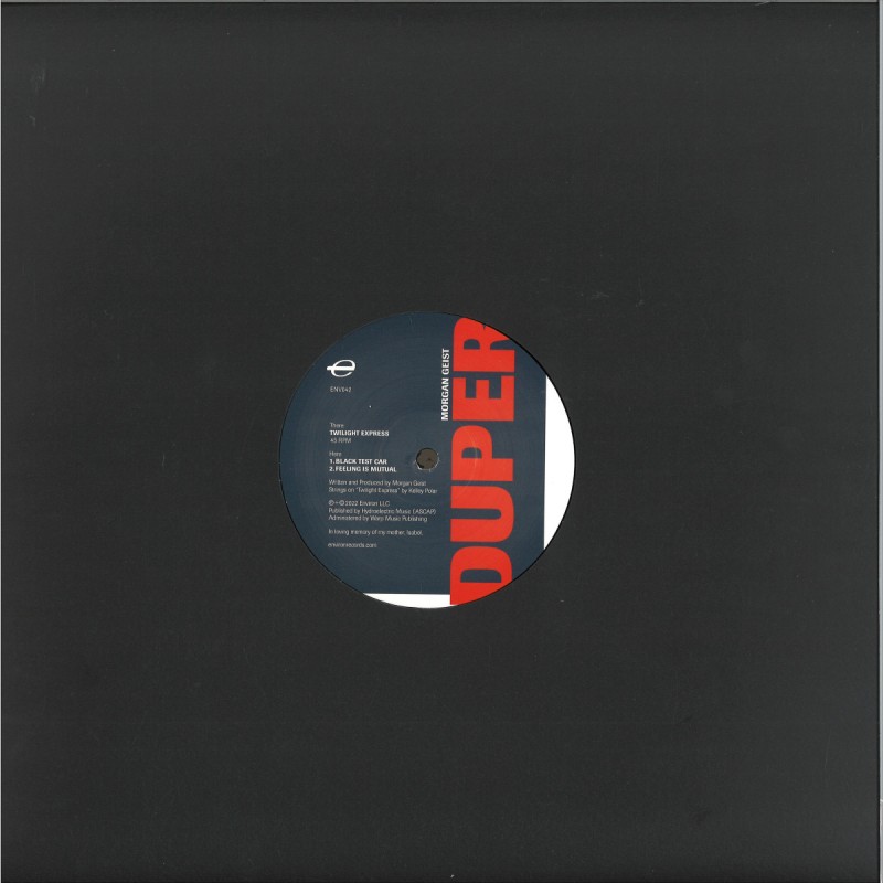 Duper, the new release from Morgan Geist, is a not-so-subtle callback to his 2001 EP, Super. "I was working most days with Kelley Polar on our new vocal project, Au Suisse, which isn't really dance music at all," he explains. "I started fooling around with these instrumental tracks at night for fun. Each track was in a different style, but they seemed to work nicely as a group. By the time I asked Kelley to contribute strings to the A-side, the record really started feeling like the sequel to Super."