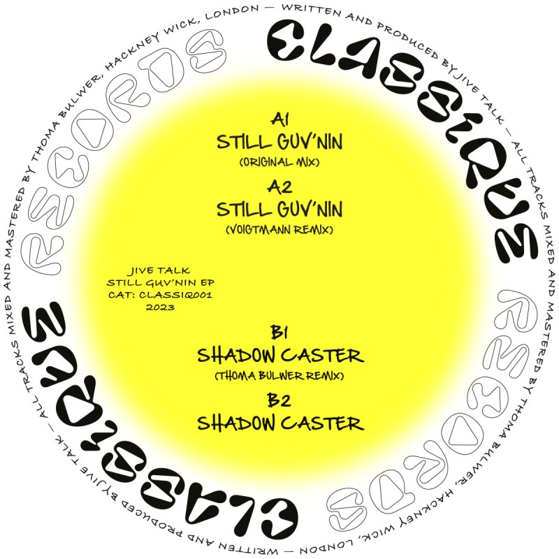 Fresh off the back of their release of the Ghost’s label (Ghost Rec) Jive Talk deliver a naughty bassline driven A-side “Still Guvn’in’” and deeper garage flex on the B-side. Voigtmann’s remix is probably the house-iest or Claus-iest we’ve heard from the top draw selector and producer. It’s a hands up in the air ‘Classique’ sounding remix for “any-time of the night track”, to quote Enzo.