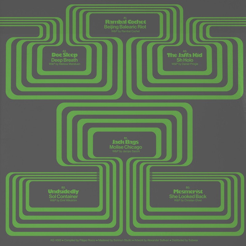 Volume Three is a well thought mix of styles, spanning to and from two Trance oriented tracks from Rambal Cochet and The Mesmerist through the broken techno of Doc Sleep, Jack Bags’s all analogue Acid House track, The Jaffa Kid’s uncompromising Drexcian’s Electro and Undsidedly dreamy’s own take on the genre.