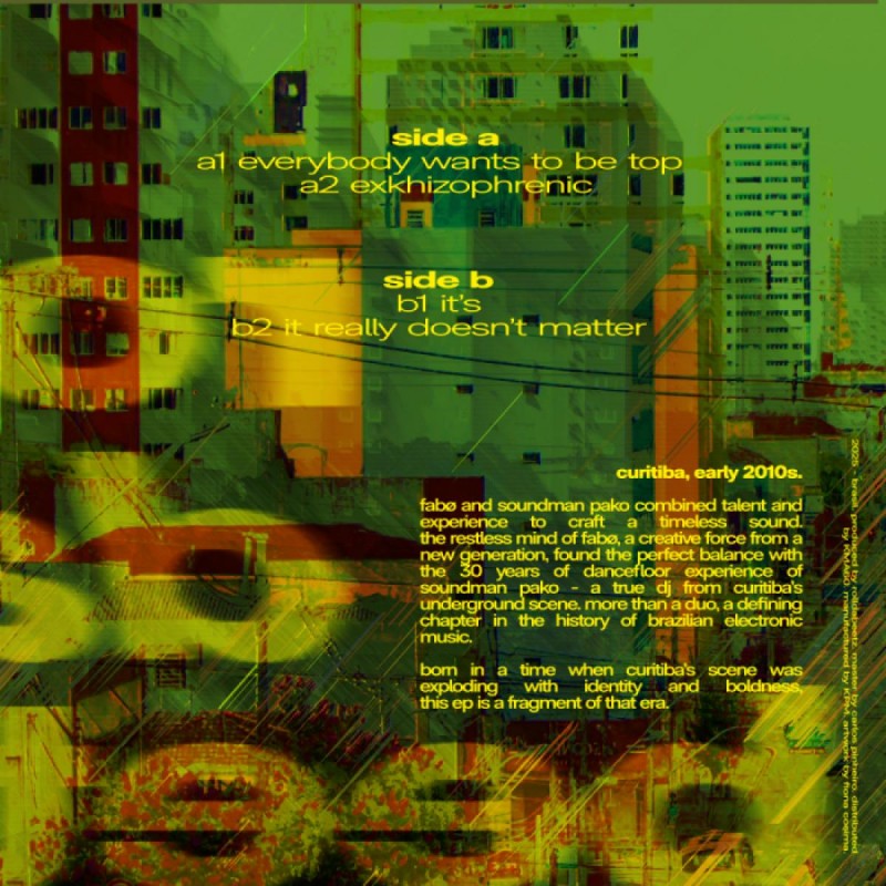 These 4 tracks are fragments of that era, produced between 2010 and 2019, when Curitiba’s scene was exploding with identity and boldness. Each one carries the energy of those dancefloors at that moment in time. The sound blends influences of techno, minimal, house, and funk, designed for serious dance floors.