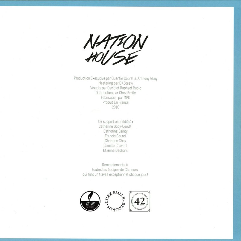 This Nation House's first release is called « Chalutier Du Havre » as G'Boï & Jean Mi are willing to name all La Chinerie's releases with a name based on the acronym of the dedicated group (C.D.H. As Chineurs de House for all House releases). « Chalutier Du Havre » means Trawler from le Havre whitch is a portuary city in Northern France. As their first release, « Chalutier Du Havre » was meant to be a French one. Therefore, 8 talented French artists joined the ship and help Quentin & Anthony build a wonderful 2x12'' LP that shines with its ecletism. A1 « Une Autre Génération » written by Nicolas Mondragon aka Deepah is a perfect introduction to this LP with its absolute smooth deepness reminding us of the foundations of House Music based on social-cultural mix and tolerance. « Everybody was freakin' » is the metaphor designating these human values that are the legacy left from these old days to be transmitted to « another generation ». A2 « Cent Quatre-Vingt-Sept » wrtitten by Joss Moog follows Deepah in it's deepness ; the lower tempo and afro-caribbean percussions introduce perfectly B1 « Chapitres » written by S3A Sampling as an Art. Typically the kind of track that can be played or listened anytime, anywhere, « Chapitres » shows perfectly S3A's sampling skills and how he can build a funky disco hit out of several samples. To end the first part of the LP, it's young duo Dub Striker on B2 with « Sainte Victoire », highly coloured and powerful, this track is a dancefloor killer with it's endless synth and strong kick...to be listened eyes closed. C1 « NTM » written by Sweely launches the darker side of the LP with its sharp vocal and hats and this massive kick that makes you wanna shake your head so hard you'd break your cervical vertabrae. C2 « Barbès » by duo Mara Lakour follows the dark lead given by C1 in a more groovy way given by this acid bass lead and those dancing hats. D1 « Equinoxe » written by Janeret is the pre-conclusion of this LP, dubby stuff that's makes you feel as if you were sitting in a rocket destination moon, staring at the window and enjoy some spectacular space routine. D2 « Hent Avel » by Baptiste Letertre aka Ringard ; that's it, you made it to the moon, enjoy the stroll with those hypnotic layers but don't forget to come back to earth.