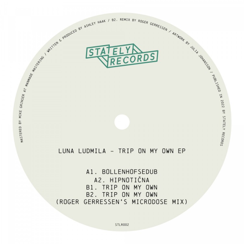 Stately Records is back with their third physical release and this time the Dutch graduated minimalist Luna Ludmila is in control. Luna delivers an incredibly diverse EP, looking back on a rough past 2 years with her title track ‘Trip On My Own’ and celebrating her Slovenian roots with the atmospheric ‘Hipnotična’. The EP is completed by the dubby opener ‘Bollenhofsedub’ and a heavy remix by one of Netherlands’ finest, Roger Gerressen. Vinyl Only!