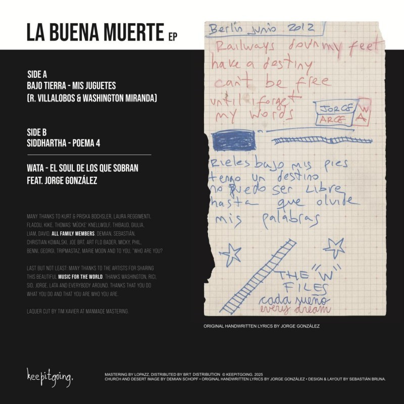 Swiss label keepitgoing. returns with La Buena Muerte, a three-tracker uniting Ricardo Villalobos & Washington Miranda, Siddhartha, and Wata with Jorge González of Los Updates — a cross-section of Chile’s most vital electronic voices brought together on one record.