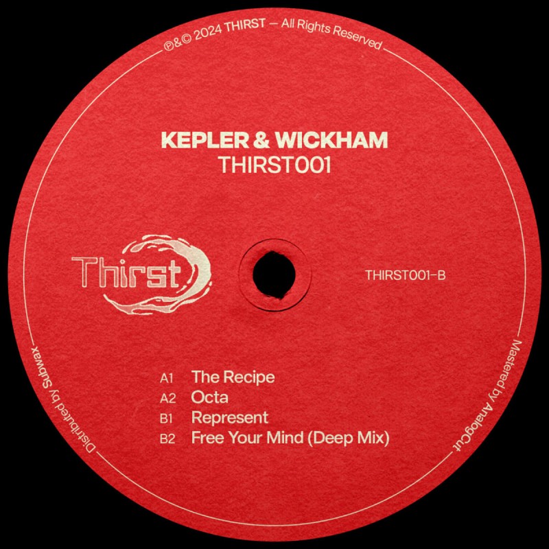 Leeds-based long-time friends Kepler & Wickham join forces for the first Thirst release, with four varied and functional house cuts. ‘The Recipe’ kicks things off with a wiggy bassline and plenty of energy, Octa takes things into more melodic territory with a nod to classic deep house. The B side starts in hypnotic fashion with the golden-era UK tech house influenced ‘Represent’, before the closing future classic ‘Free Your Mind (Deep Mix)’ wraps the package up nicely. Something classy for all occasions.