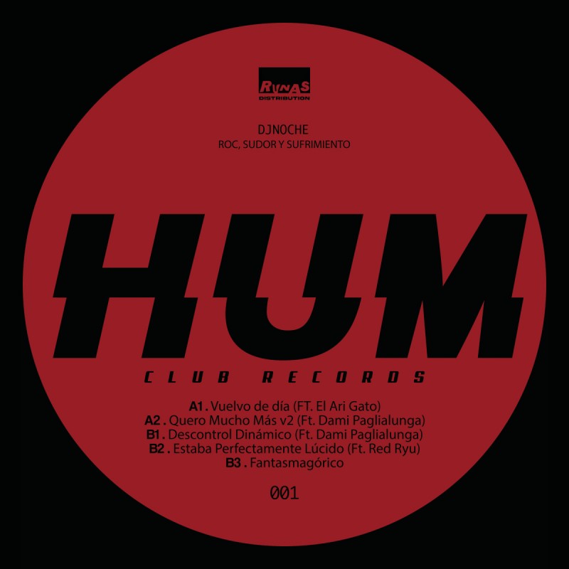 We're proud to launch Hum Club Records with the debut release from DJ Noche: "ROC, SUDOR Y SUFRIMIENTO". A record that explores different shades of techno, EBM, acid and electro — all blended with a rock-influenced spirit that moves between dramatic, melancholic and energetic, in a fairly daring way. Dubby and trip-hop-inspired rhythms also find their space, opening up new textures and moods. The tracks feature vocals and sound design from various Rosario-based artists, adding diversity and identity to each piece. A straightforward and honest first step for the label — no templates, just sound.