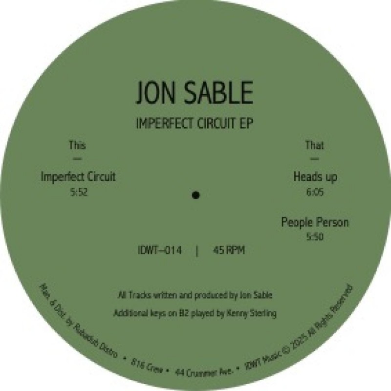 The A-side title track Imperfect Circuit offers a dubby, rolling groove, combining loose percussion with textured stabs and a steady bassline. On the B-side, Heads Up brings warmer pads and a more solid, thumping low end for a grounded feel. Closing the record, People Person centers on a gritty, groove-driven drum pattern with a raw, rhythmic focus.
