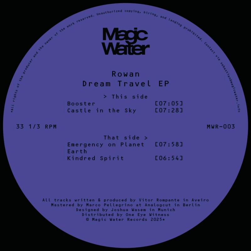 Magic Water Records proudly returns with its third release featuring Portuguese producer Rowan. The “Dream Travel” EP fuses trance soundscapes with weighty drums; each track is designed for a different dancefloor moment. Limited to 300, Vinyl only.