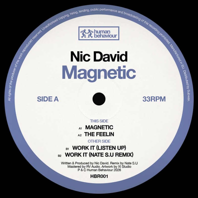 First up one up on the label is Nic David with his highly anticipated EP “Magnetic”. It pushes and pulls the boundaries of house and electro, connecting frequencies that attract positive feelings and inspire irresistible movement on the dance floor. Followed by A2 we have “The Feelin” a track that takes you on a journey with no destination, an ever-evolving ride through funky basslines and enlightened melodies. B1 taking a turn into the harder sounds with “Work it (Listen up)” capturing the mind with heavy drums and mind altering sounds through peak moments. And for the final track we are proud to have none other than Nate S.U for the remix of “Work It”. A forward thinking human known for his hypnotic sounds, creating timeless music that sits on its own throne. His take on “Work It” fuses electronic textures and a rock inspired rhythm, pushing the boundaries from the ordinary.
