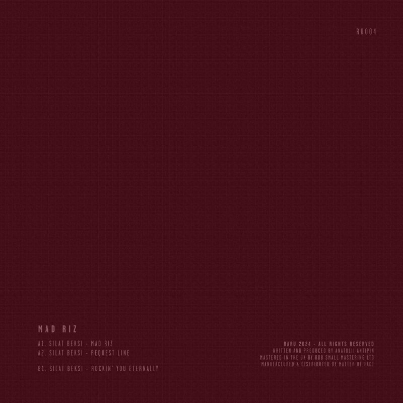 Rooted in Raru’s philosophy of craftsmanship and cultural connection, Mad Riz reflects both the label’s dedication to high-quality vinyl culture and Beksi’s unique approach to sound design. A pure expression of the contemporary underground — timeless, detailed, and built for lasting resonance.