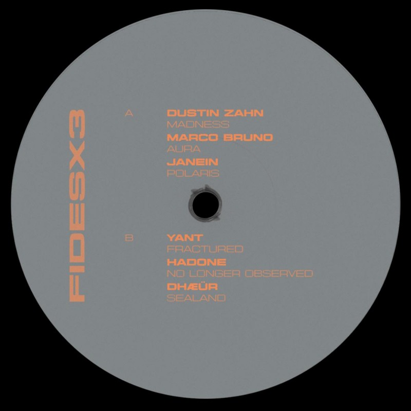 Flipping to Side B, Yant’s “Fractured” shifts the palette: playful yet precise, kinetic in motion, with textures that keep mutating as the rhythm snaps into place. DHÆÜR “Sealand” captures the mood of a young Italian artist carving a new lane in minimal, elegant, unapologetic techno—energized and raw, yet defined by clean design, confident restraint, and a sharp personal signature. The record concludes with Hadone’s “No Longer Observed”, a dub-tinged stomper rich in detail and low-end depth; club-weight with an emotional undercurrent, balancing elegance and power in a way that feels unmistakably Fides.